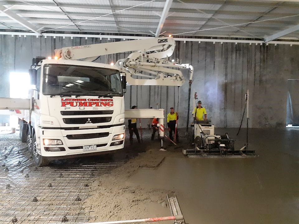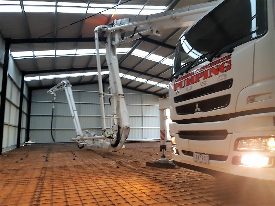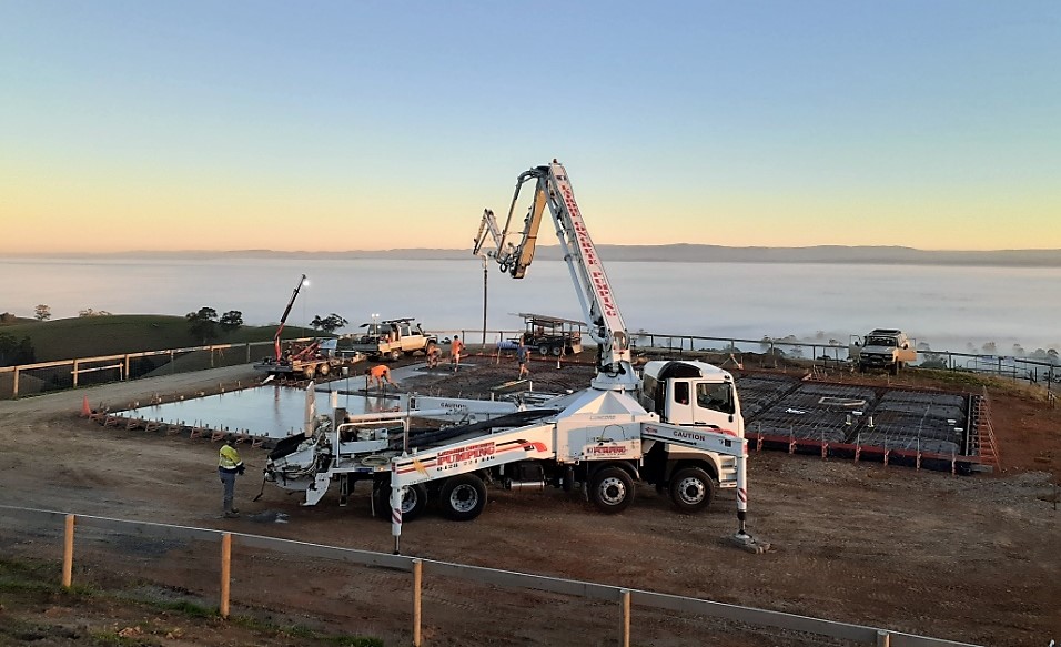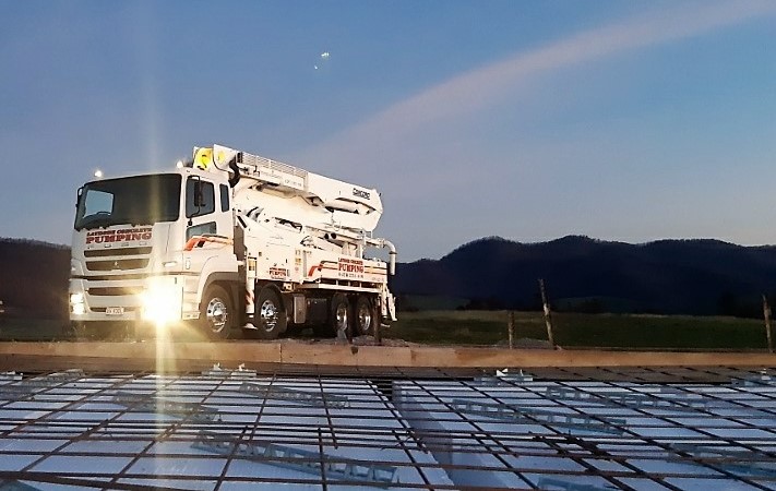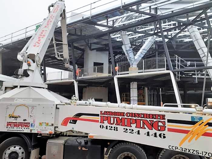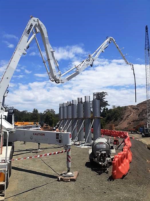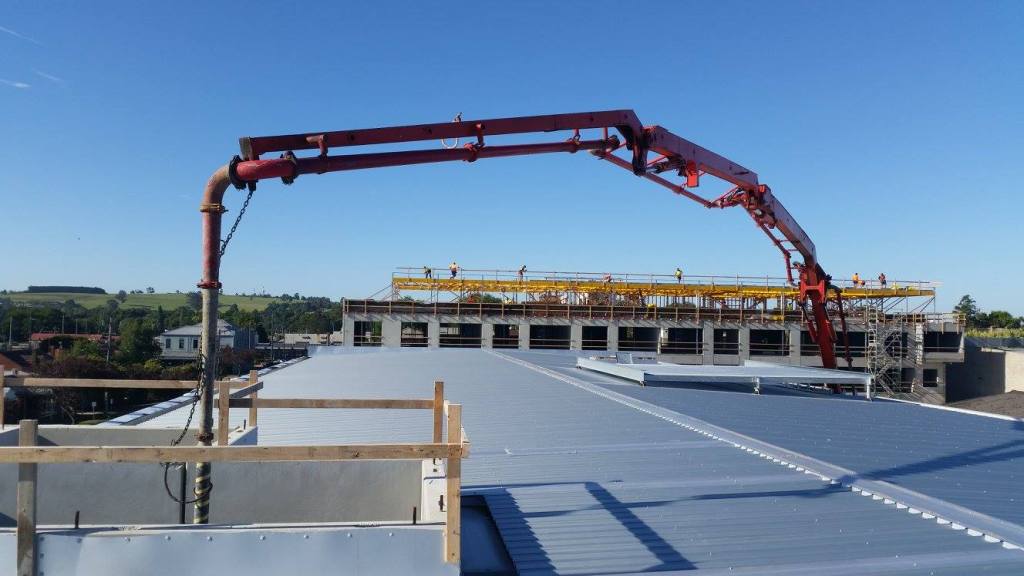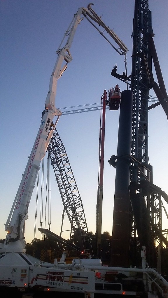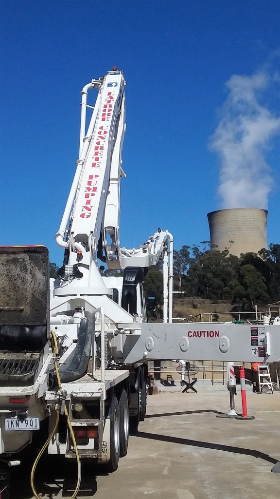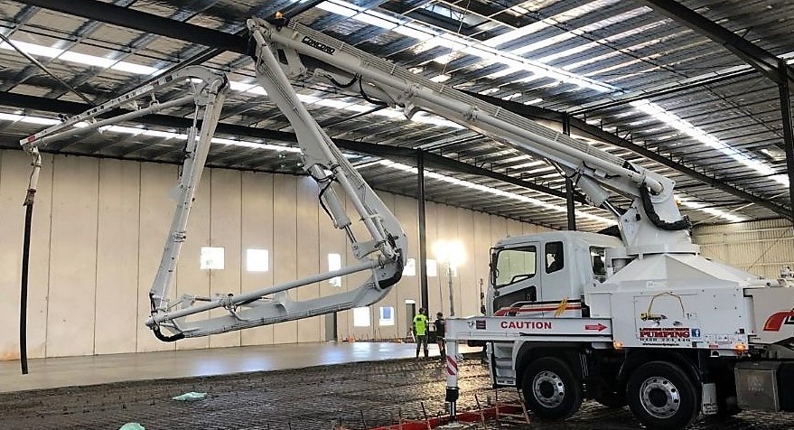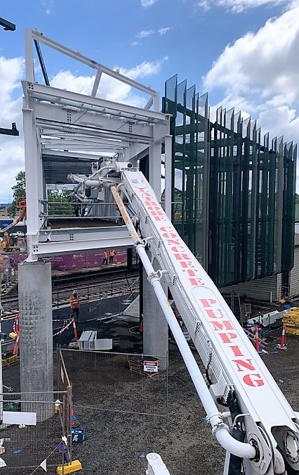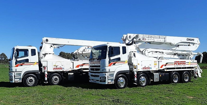Two of our concrete pumps – Concord 38m and 32m booms (five stage zc / multi-z fold)