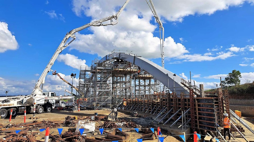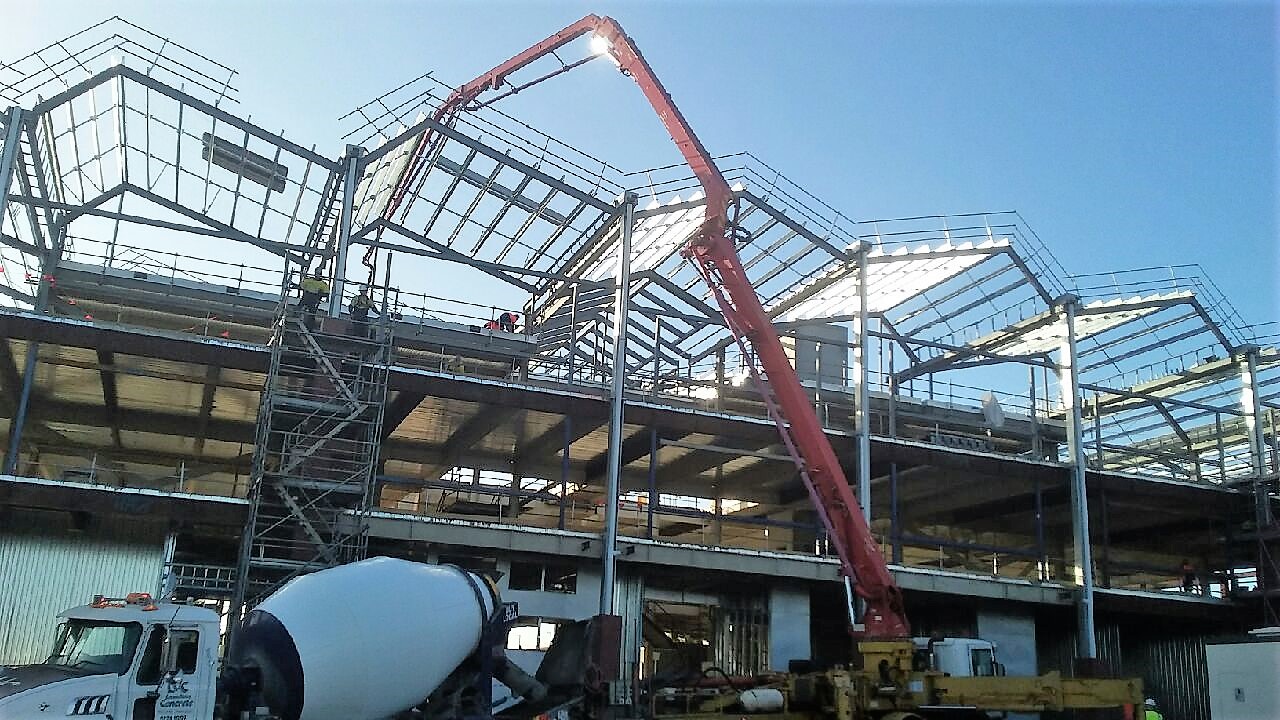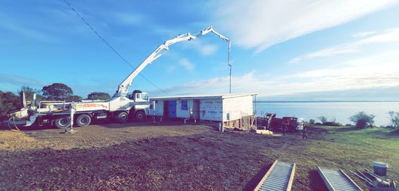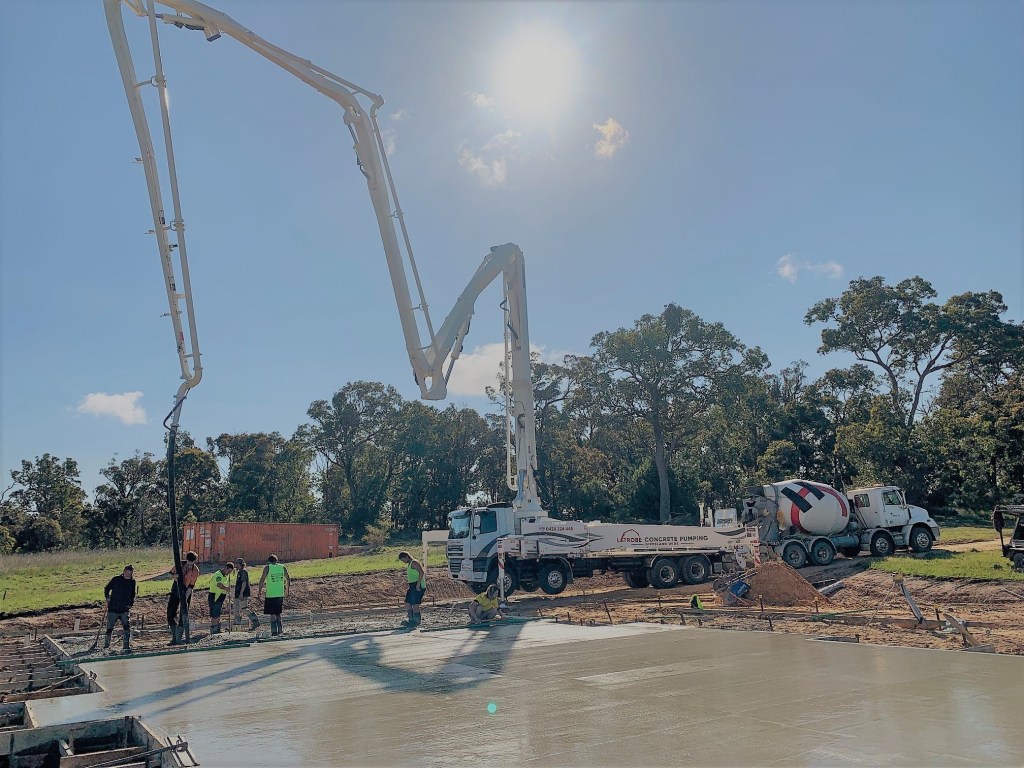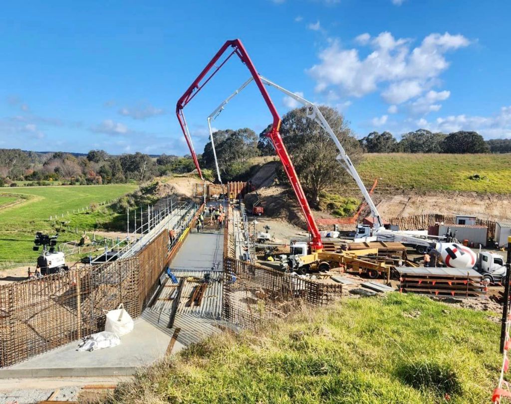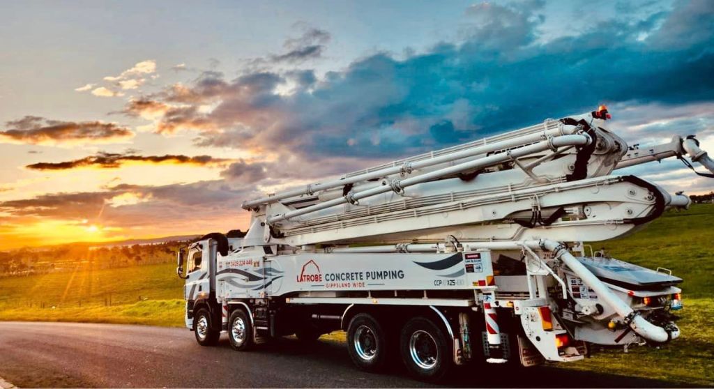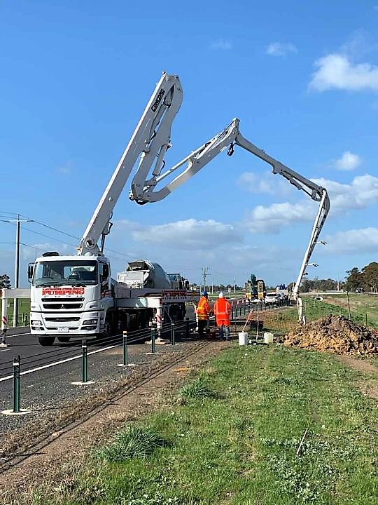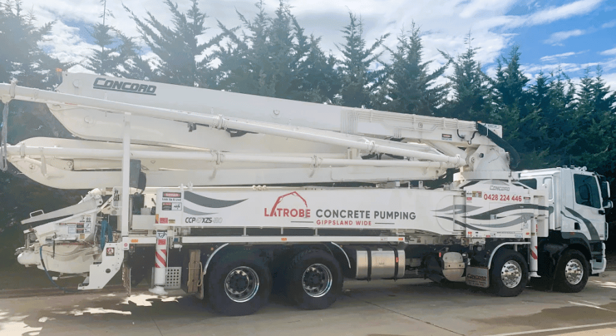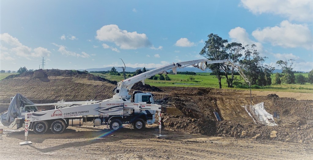 Two of our concrete pumps – Concord 38m and 32m booms (five stage zc / multi-z fold)